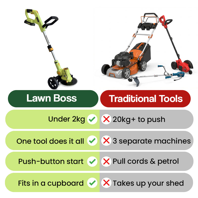 Try Lawn Boss in your own backyard for a full month — mow, trim, and edge at your own pace.